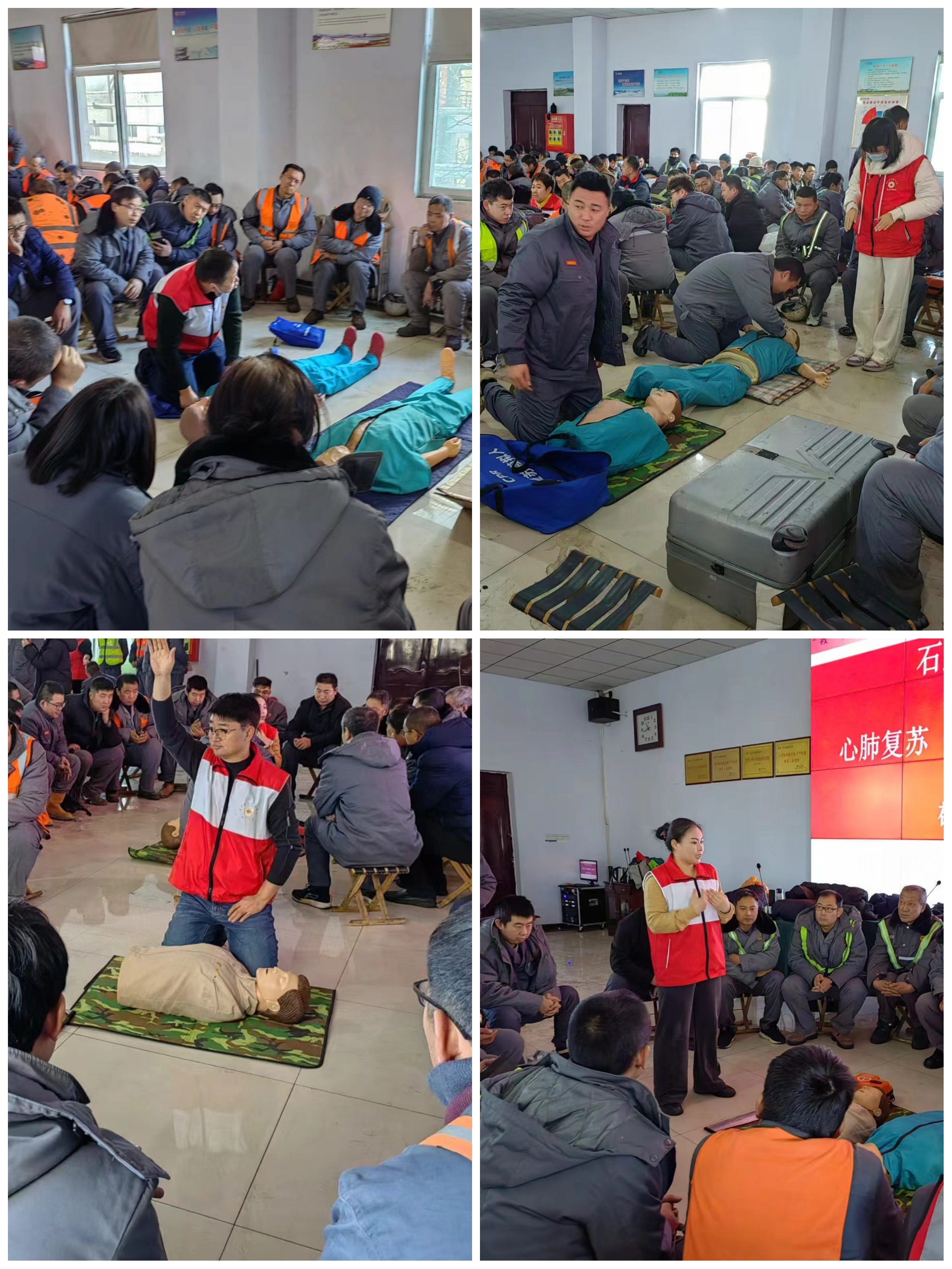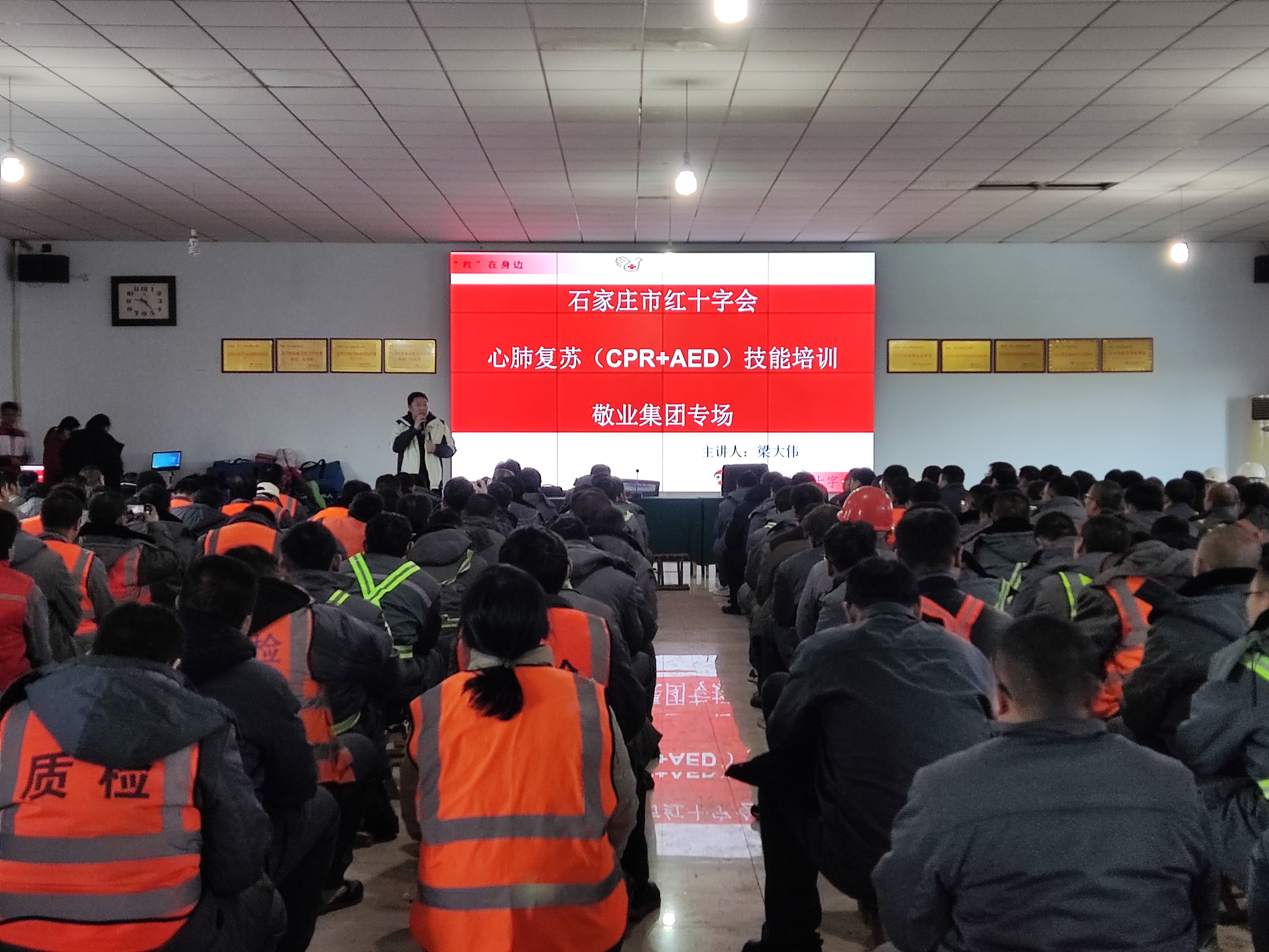为全面普及应急救护知识和技能,提高企业员工应对突发事件的自救互救能力,12月17日至19日,石家庄市红十字会、平山县红十字会在河北敬业集团举办了红十字应急救护AED+CPR培训班,集团安全部门组织了各岗位的安全管理人员、应急队员等总计820名员工参加了培训。