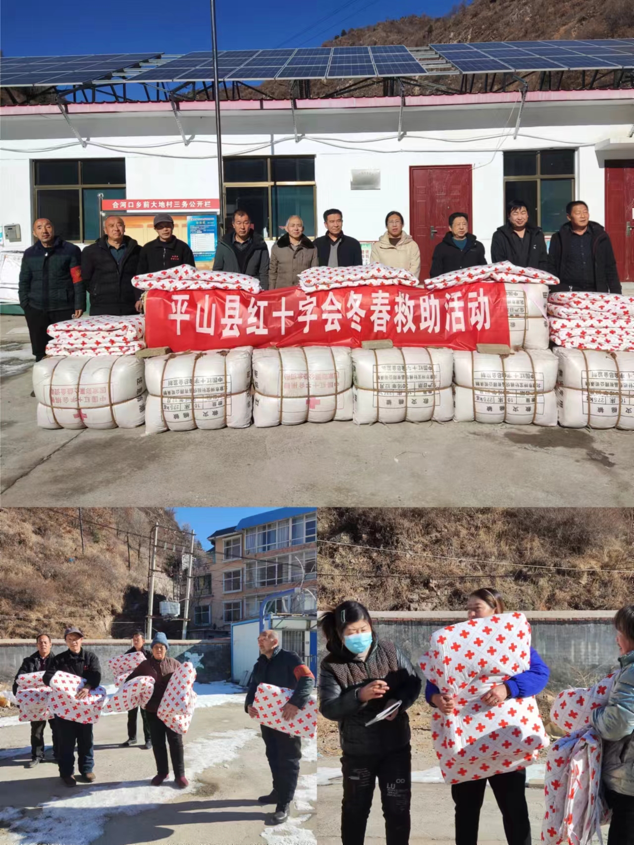 1月15日,县红十字会来到平山西北部山区合河口乡前大地村,为留守在村里的困难群众发放棉被。前大地村是避暑圣地驼梁景区所在地,与山西接壤,年平均气温为17℃,有条件的村民每年冬天就回县城或石家庄躲避严寒,留守在村里的大都是孤寡老人、特困家庭。收到红十字会捐赠的棉被,县发改局驻前大地村工作组组长封立新高兴地说:“这次冬春救助帮助解决了村内留守老人和困难家庭冬季御寒的问题,使他们又一次感受到党和政府的温暖,也有助于我们进一步巩固脱贫攻坚成果,实现乡村振兴。”