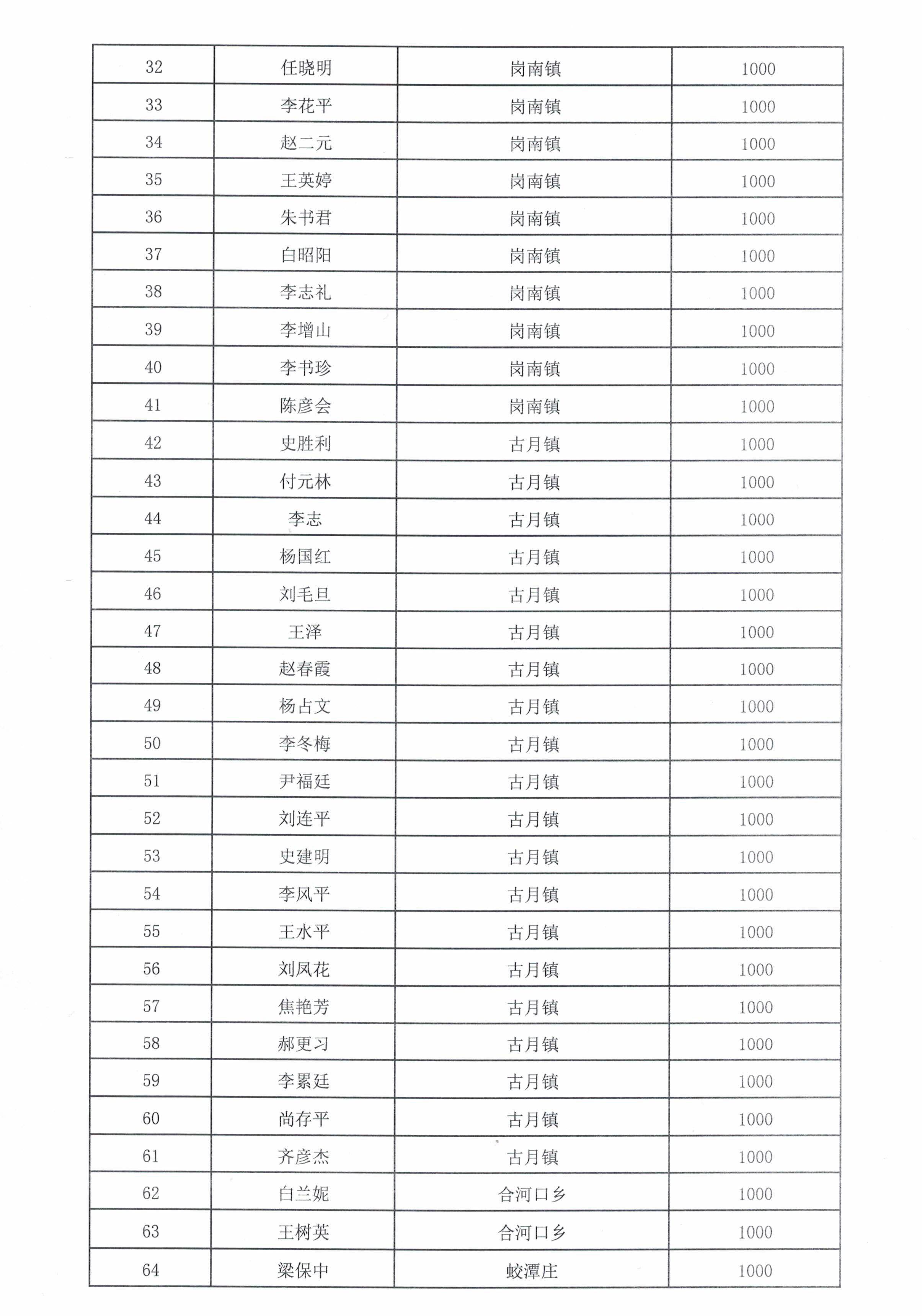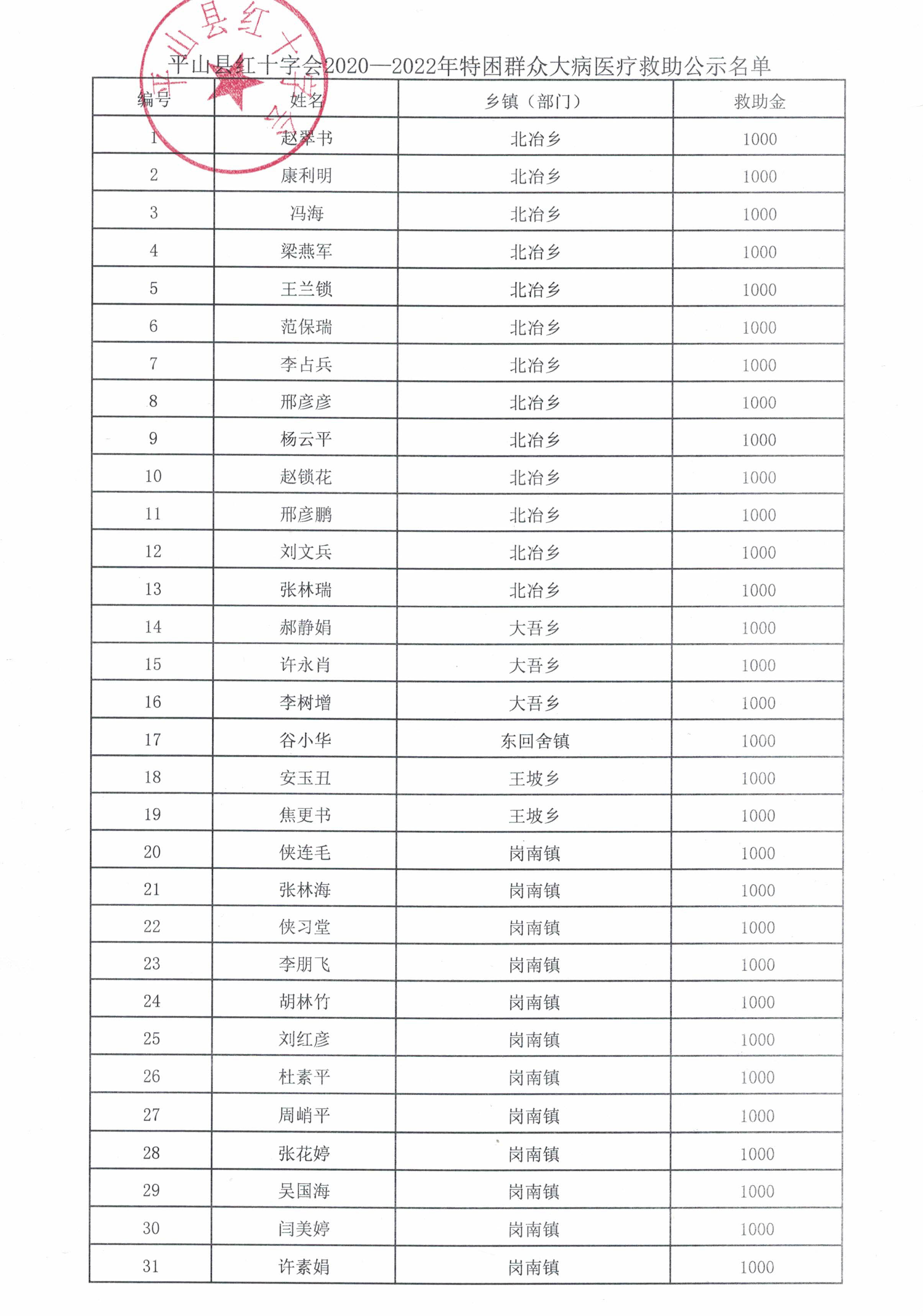平山县红十字会2020—2022年特困群众大病医疗救助公示名单